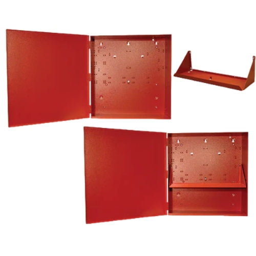 The BATB Family of battery boxenclosures is red for use in fire alarm systems. The BATB-40 provides a single level (two battery capacity) of battery storage. The optional BATB-SHELF battery shelf increases the battery capacity to four batteries. The BATB-80 comes with the BATB-SHELF mounted and holds up to four batteries.