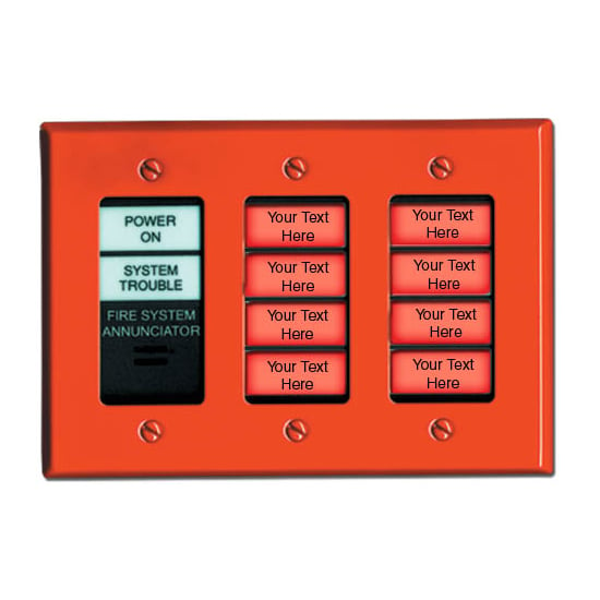 The eight zone LEDs on these annunciators can be individually labeled for quick zone identification. An additional two LEDs are labeled for power and trouble indication.
