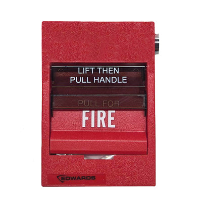 EDWARDS’s double action single stage SIGA-278 station is a contemporary style manual station made from durable red colored lexan. To initiate an alarm, first lift the upper door marked “LIFT THEN PULL HANDLE”, then pull the alarm handle.