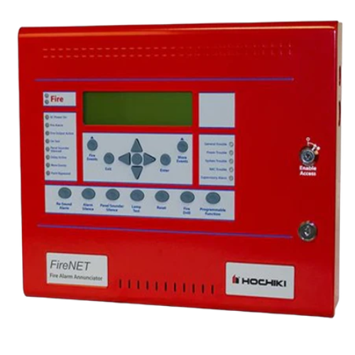 The FN-LCD-N type LCD network annunciator is designed to be used with the FireNET® intelligent addressable system. It allows for remote access, monitoring, and control of the FireNET® system throughout the building. The FN-LCD-N is a true network annunciator that can access, monitor, and control any or all FireNET® panels in the network. Each FN-LCD-N is completely independent.